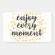 Design gráfico moderno e criativo de um ditado que diz "Aproveite cada momento". Círculos engraçados e bonitos com tipografia urbana, caligráfica, escrita à mão, em cores amarela e preta.