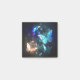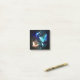 Fabulosa, brilhante, azul e amarela, borboleta noturna sobre fundo escuro.