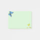 Poste-o com as borboletas azuis e amarelas bonitinhas e três pontos de confete metálicos dourados sobre fundo verde-claro.