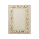 Uma fronteira de conchas marítimas na areia da praia. Dentro na fronteira, a areia da praia está desbotada, para permitir um escrevendo mais fácil.
