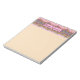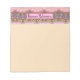 Este bloco de notas tem o meu padrão original que parece uma borda vitoriana de papel de parede. As cores são cor-de-rosa, rosa poeirento, azul-campo com um toque de magenta e branco. O padrão geral é uma banda estreita de vieiras cor-de-rosa com um aspecto lento. abaixo está uma banda maior de vieiras em cor-de-rosa poeirento com pequenas flores brancas com centros castanhos, hastes de trigo coloridos em ouro e formas de fãs azuis. Há uma fronteira estreita de azul-país no fundo. Você pode mudar o nome que está em um retângulo cor-de-rosa enquadrado com rosa empoeirado. Um notebook correspondente e outros produtos de papel estão na minha coleção "Write It Down".