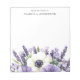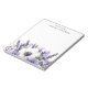 Um belo bloco de anotações personalizado com um delicado buquê floral de flores roxas e brancas contra o verde-luxuoso. O arranjo elegante decora borda inferior, criando um design sofisticado e na moda perfeito para adicionar um toque pessoal às suas notas e correspondência.
