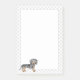 A ilustração original do desenho de Destei de um lindo cachorro preto de cabelo curto e casaco de cor de maçã bronzeada da raça Dachshund. O meio é branco, enquanto as bordas têm um padrão de estampas de pata de cinza.