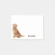 Notas adesivas fofas e elegantes com fotografia de um cachorro Golden Retriever em um fundo branco. Personalize e altere o nome para o seu. Essas notas engraçadas serão um presente perfeito personalizado.
