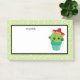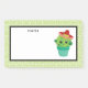 Poste-o com uma bela ilustração de um cacto verde sentado num pote de flores. Grandes olhos kawaii e vestindo um sombrero vermelho. O plano de fundo é um padrão com espirais de verde limão com um quadro branco sobre o topo para o dentro de escrevendo.