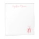 Este bonito bloco de notas cor-de-rosa é perfeito para a bailarina ou dançarina em sua vida. Uma fonte de script elegante é usada para o nome, e calçados de bailarina cor-de-rosa adornam o canto inferior direito do bloco de notas.