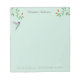 Unique notepad featuring a hand-painted Anna's Hummingbird and flowery branches on a pale blue background. Anna's Hummingbird can be found year-round resident in California, breeding in winter and nesting during the rainy season in gardens and parks to chaparral, frequenting feeders and native plants.