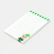 Trevos sortudos e um elfo verde e bonitinho com ouro em notas brancas de Posto. Ideal para comprar lista, coisas a fazer, fazer lista e assim por diante.
