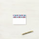 Este bloco de notas de Posto tem um design novidade de caminhões e ônibus em vermelho, azul, verde e marrom em um campo de azul claro.