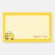 Caricatura de brinquedo amarelo com texto personalizado.