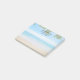 Notas pegajosas com uma fotografia de paisagem de uma praia tropical. Areia quente, água azul e azul com folhas tropicais ao longo do topo. Personalize com seus nomes, data e local do casamento. Ou outro texto adequado aos seus propósitos.