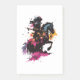 A foto mostra um guerreiro armado em cheio ou montado em um cavalo majestoso. A técnica de pintura aquarela acrescenta à imagem uma qualidade sutil e sonhadora, dando-lhe uma sensação romântica e um pouco caprichosa. O guerreiro está segurando uma lança na mão, apontando-a para a frente como se estivesse pronto para a batalha. A armadura é detalhada com linhas finas e sombreamento, dando-lhe uma sensação de profundidade e peso. O cavalo também é lindamente renderizado com seus músculos e contornos cuidadosamente capturados no meio aquarela. A composição geral da pintura é equilibrada e dinâmica. A pintura captura um sentido de aventura e entusiasmo, convidando o espectador a imaginar a história por trás desse nobre guerreiro e de seu filão de confiança.