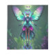 Esta imagem é uma bela cena balística, com duas grandes borboletas etéreas com asas vibrantes e detalhadas em tons de azul, roxo, rosa e amarelo, acentuadas com pequenos pontos brilhantes. As borboletas pairam no centro da imagem, iluminadas por uma lua de cheio brilhando suavemente ao fundo, criando uma atmosfera mágica noturna. Ao redor das borboletas, há uma quantidade exuberante de flores coloridas em flores de cheio, incluindo flores roxas e brancas, junto com algumas flores amarelas menores. As flores são aninhadas num vaso com um intrincado design, que se senta sobre um pedaço de grama banhado à luz da lua. A cena é enquadrada por estruturas curvas, em forma de árvore, acrescentando uma sensação de profundidade e cercado. Pequenos detalhes, como uma borboleta minúscula no canto superior esquerdo e algumas folhas e pétalas espalhadas ao redor, somam ao encanto e à servidão ambiente desse fantástico jardim noturno.