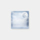 Notas pegajosas com um céu de fantasia mágico com nuvens azuis e uma lua grande e bonita. 2 cisnes brancas voando juntas.