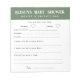 Torne o chá de fraldas mais divertido e interativo com este painel de notas do chá de fraldas de conselhos verdes sábios e previsões. Este bloco de notas tem 40 folhas de papel com perguntas e sugestões para que você preencha seus palpites e dicas para a chegada do bebê. Você pode anotar seu nome, peso, comprimento, data de nascimento, cor do olho, cor do cabelo e muito mais. Você também pode dar seu melhor conselho para a mãe ser parentalidade, dormir, alimentar e qualquer outra coisa que você acha que ela deveria saber. Este bloco de notas de jogo é uma forma excelente de quebrar o gelo e envolver todos no chá de fraldas.