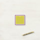 Monogrammed sticky notes in a preppy design with purple and white borders, a chartreuse background, and your initials in white.