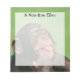 Bloco de notas de 5,5" x 6" com uma imagem de um chimpanzé viscoso em verde e um espaço escrevendo branco e transparente. Texto opcional. Veja toda a coleção de Notepad Safari nos TOUCHES ESPECIAIS | Seção Favoritos para festas.