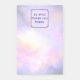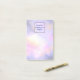 Grandes notas adesivas com uma citação inspiradora que diz "faça o que te faz feliz". O fundo é uma pintura a aquarela abstrato com nuvens de espaço luminoso em cores pastel macio.