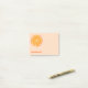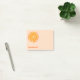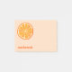 Papel de papelaria personalizado com uma fatia de laranja cítrica divertida e um nome em uma fonte moderna e minúscula sobre um fundo cor-de-rosa pincelado. Arte original de Nic Squirrell.