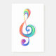 Chave musical desenhada a partir de camadas multicoloridas de cores do arco-íris sobre fundo branco.