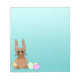 Bloco de notas de 5,5" x 6" com uma imagem do coelho da Páscoa com quatro ovos de bolinhas em azul-ombre. Consulte notebook correspondente. Consulte toda a coleção do Bloco de Notas de Páscoa na seção HOLIDAYS.
