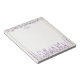 Adicione um toque de charme às suas notas com este bloco de notas com um fundo creme suave, bordas delicadas de lavanda roxa e um detalhe de borboleta suave inspirado em campos de verão pacíficos. Personalize com um nome ou título. Faz um ótimo presente para quem ama arte botânica e estilo clássico.