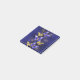 Composição de borboletas luxuosas de safira e joias de ouro em fundo azul texturizado.