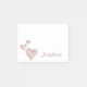 Notas adesivas fofas e elegantes apresentam corações de rosa dourado com brilho estático em um fundo branco. Personalize e altere o nome para o seu. Estas notas cintilantes serão um presente perfeito personalizado.
