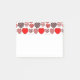 Este bloco de notas de Posto tem um design de repetição de corações do Namorados com dentro de gráficos diferentes em um campo de branco.