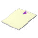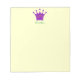 Bloco de notas amarelo macio de 5,5" x 6" com a imagem de uma coroa de gras púrpura com as iniciais douradas que podem ser removidas ou substituídas por suas, bem como o texto "Mardi Gras" impresso por baixo dela em roxo em francês. Veja toda a coleção de Notepad do Mardi Gras nos TOUCHES ESPECIAIS | Seção Favoritos para festas.