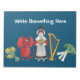 Um Notepad ou Jotter divertido de personalizar, com uma fileira de Welsh Emblems, uma garota de vestido tradicional galês, um dragão vermelho, um monte de alhos, uma harpa e um monte de narcisos; você pode facilmente mudar o fundo azul se quiser.