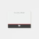 Coloque um texto personalizado no topo para o seu nome, e um conjunto elegante de prato preto e branco num guardanapo no fundo de uma fita vermelha e preta sobre um fundo de cinza leve.