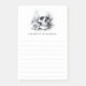 Notas adesivas alinhadas com pintura aquosa de um crânio rodeado por rosas e seu nome ou outro texto personalizado.