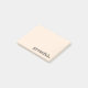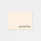 Um bloco de anotações adesivo de creme com a palavra 'grata' na parte inferior. O texto pode ser personalizado com um nome ou outro texto.