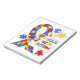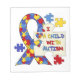 Uma parte do quebra-cabeça que me leia 'ama uma criança com autismo", partes do quebra-cabeça de azul, de vermelho, e amarelo e a fita da consciência do autismo em t-shirt da consciência do autismo, em hoodies, em canecas, em ímãs, em cartões, em etiquetas, em bolsas, em chaveiro, em botões, e em outros artigos.
