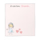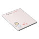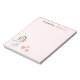 Personalize este bloco de notas para uma menina, com o nome dela. Projetado a rosa com uma pequena figura de pau-menina vestida de lilás, bolinhas verdes, com corações.