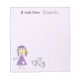 Personalize este bloco de notas para uma menina, com o nome dela. Projetado em lilás com uma pequena figura de pau-menina vestida de bolinhas roxas, com corações.