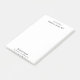 na escrivaninha de aparece num script elegante acima do texto sem script para o seu nome. O texto adicional para o seu título de trabalho, número de telefone, correio eletrônico ou outra mensagem personalizada está perto do fim. O texto é preto e pode ser editado ou excluído. O bloco de notas é branco.
