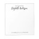 Este da mesa do bloco de notas tem texto preto no topo. Há um texto grande para exibição do nome do destinatário no topo. O nome aparecerá em um roteiro elegante, semelhante a assinatura. Há texto preto menor na parte inferior para informações de contato, como um endereço de e-mail e número de telefone.