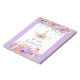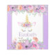 Este unicórnio é adornado com violetas de aquarelas vivas, azuis e cor-de-água, estrelas ouros e uma buzina de ouro brilhante. Este design aprecia um conjunto completo de produtos de aniversário, incluindo suprimentos básicos, assim como presentes personalizados criativos com esse tema mágico.