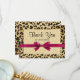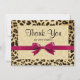 Cartão de Agradecimento com Laço Rosa Fúcsia Vibrante e Impressão de Leopardo é excelente para Chás de Panela ou ocasiões para a mulher feminina e delicada com um toque de moda e estilo moderno.