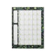 Este calendário de bloco de anotações perpétuo apresenta uma grade de calendário preto e branco sobre a folhagem verde. A cor de fundo pode ser personalizada. As fontes e o texto também podem ser personalizados, assim como as caixas que contêm o Mês e as Notas, e as pequenas caixas verdes para os números do dia. Há páginas suficientes para durar 40 meses.