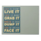 "A vida é curta - VIVE IT, Love é raro - GRAVE IT, Anger é ruim - DUMP IT, Medo é Limitado - FACE IT". Veja na minha loja os itens com este design.