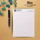 Mantenha-se organizado e profissional com este Notepad Personalizado de Grade de 5 Quadrados por Polegada, projetado com uma grade azul clara e perfeita para esboços, cálculos e planejamento detalhado. Quer você esteja trabalhando em engenharia, design, pesquisa laboratorial, ou projetos de soldagem, este painel é construído para precisão. Cada folha permite personalizar a parte superior com o logotipo da sua empresa e entrar em contato com as informações, fazer-as como uma ferramenta funcional e um promocional inteligente. As linhas de grade são configuradas como 5 quadrados por polegada, embora possam ocorrer pequenas variações devido ao processo de impressão. Leve e versátil, este painel é ideal para escritórios, salas de aula ou locais de trabalho onde a precisão e a marca importam. Procurando outros notebooks e artigos de papelaria personalizáveis? Veja nossa coleção de cheios!