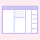 Organize o seu dia com este adorável e feminino Planeador Diário temático de flores em cores roxas e pastel! Este design único é super prático e inclui um horário com espaços em branco para se adaptar a qualquer rotina, um espaço para as suas 3 principais prioridades, um planeador de refeições e treinos, uma lista de verificação e uma coluna para notas. Atenda às suas necessidades diárias de planeamento, ilumine o seu espaço de trabalho, mantenha-se organizado e continue fofo!