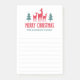 Sticky notes featuring a group of deer flanked by two green Christmas trees, and the text “Merry Christmas” below. Light gray lines for writing.