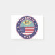 Crachá de Delaware com bandeira de Delaware e bandeira de cores EUA, forma arredondada. Emblema de Delaware. Selo de Delaware. Coleção dos Estados Unidos.