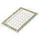 Um bloco de notas mensal personalizável com um padrão de flores boêmicas à direita.