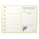 Torne o seu planeamento semanal de refeições muito especial com esta ilustração desenhada à mão de uma guaxinim giro de madeira com corações cor-de-rosa num fundo amarelo. Veja o meu compro para ver mais itens ilustrados.