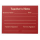 Envie um bilhete para casa com seu aluno com o Bloco de Notas do Professor personalizado. O espaço é fornecido para o nome do seu aluno, a data, uma nota e a sua assinatura. Pode ter a certeza de que os pais do seu aluno estão cientes de uma questão ou evento importante, solicitando ao seu aluno que devolva a sua nota com a assinatura do seu pai.